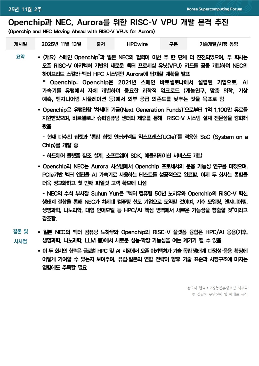 Openchip과 NEC, Aurora를 위한 RISC-V VPU 개발 본격 추진