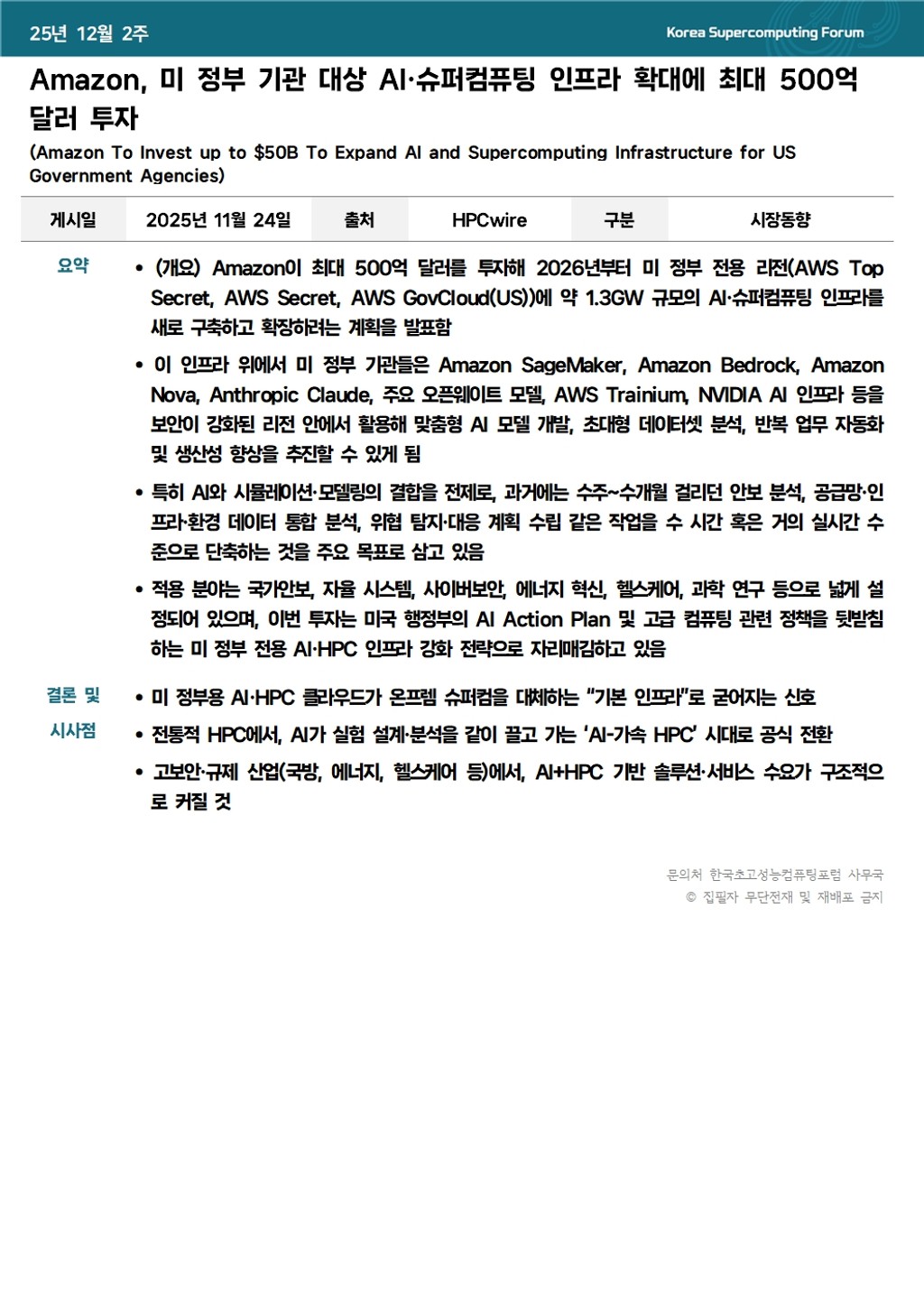 Amazon, 미 정부 기관 대상 AI·슈퍼컴퓨팅 인프라 확대에 최대 500억 달러 투자