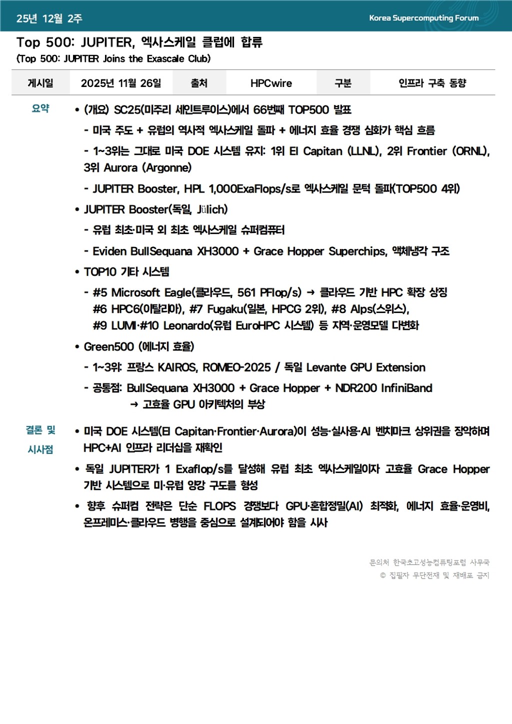Top 500: JUPITER, 엑사스케일 클럽에 합류