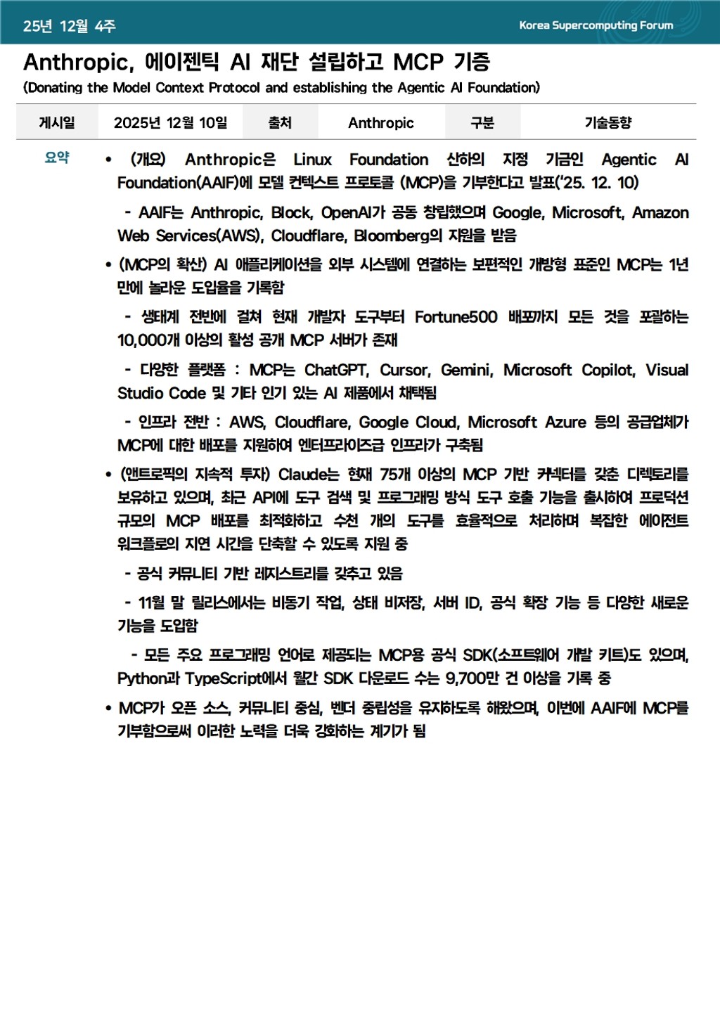 Anthropic, 에이젠틱 AI 재단 설립하고 MCP 기증