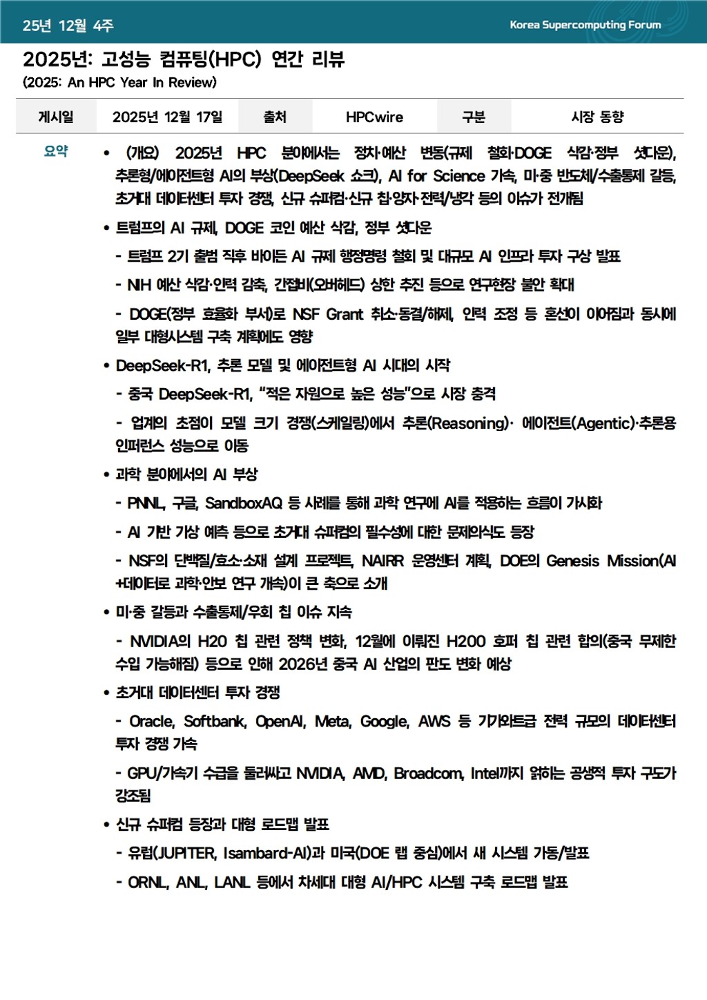 2025년: 고성능 컴퓨팅(HPC) 연간 리뷰