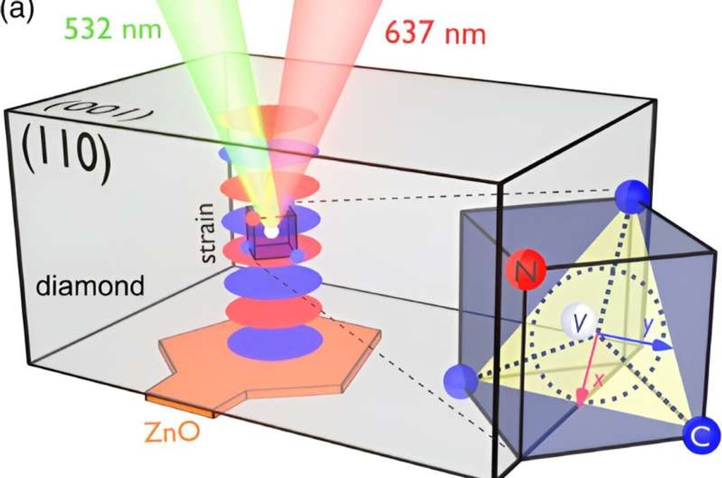 미국 코넬 대학교 연구원들은 음향 음파를 사용하여 다이아몬드의 격자 결함을 공전하는 전자의 움직임을 제어할 수 있음을 입증했다.