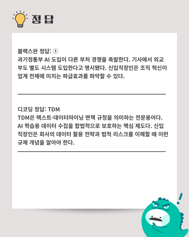 ■ 공공부문 AI 도입 확산과 업무 방식 혁신: 과학기술정보통신부가 내년 'AI 기반 특화 행정 서비스'를 구축하며 부처별 AI 도입 경쟁이 본격화되고 있다. 신입 직장인들은 공공기관뿐 아니라 민간 기업에서도 가속화될 AI 업무 도구 활용 역량을 미리 준비해야 하는 상황이다.