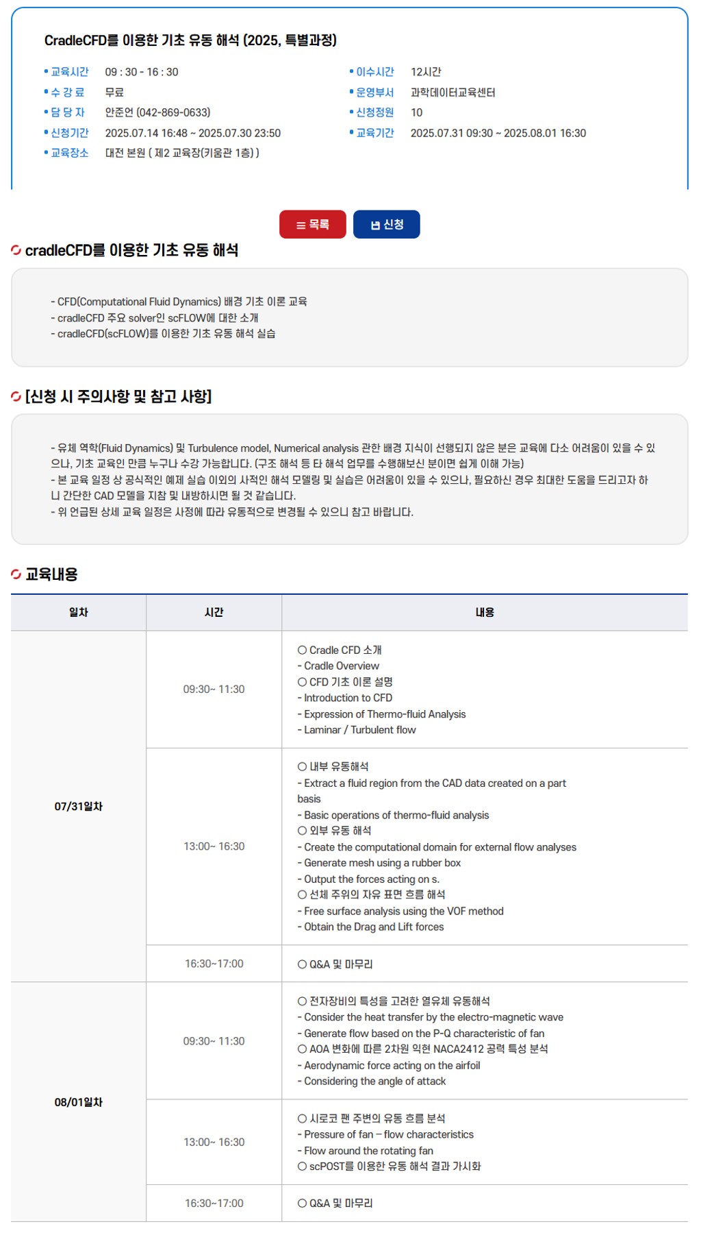 CradleCFD를 이용한 기초 유동 해석 (2025, 특별과정)