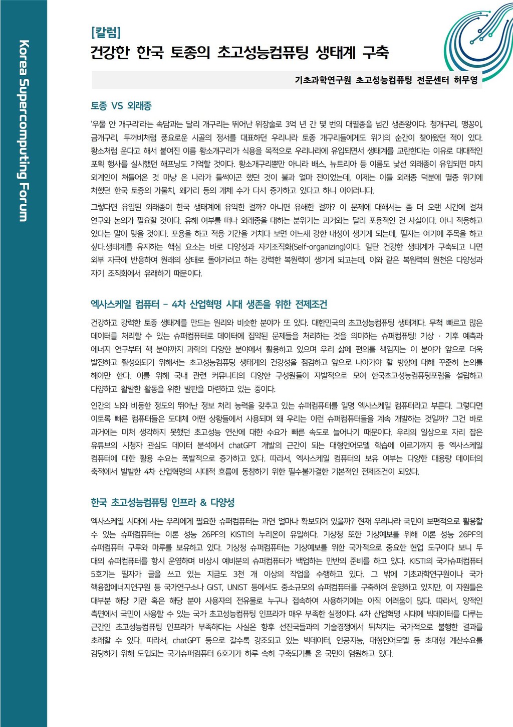 [칼럼] 건강한 한국 토종의 초고성능컴퓨팅 생태계 구축