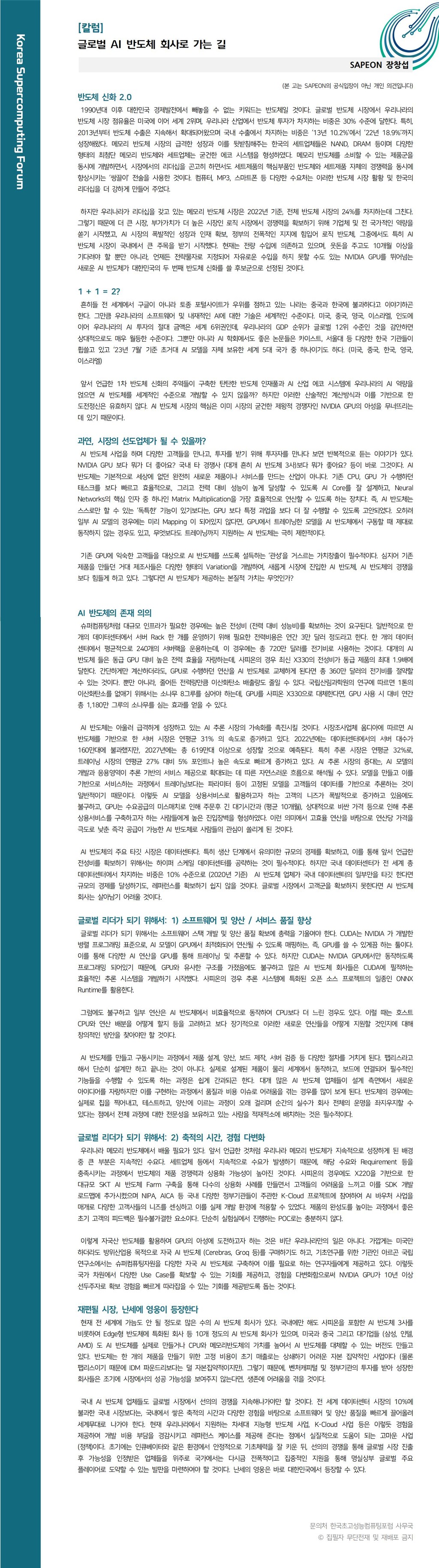 [칼럼] 글로벌 AI 반도체 회사로 가는 길