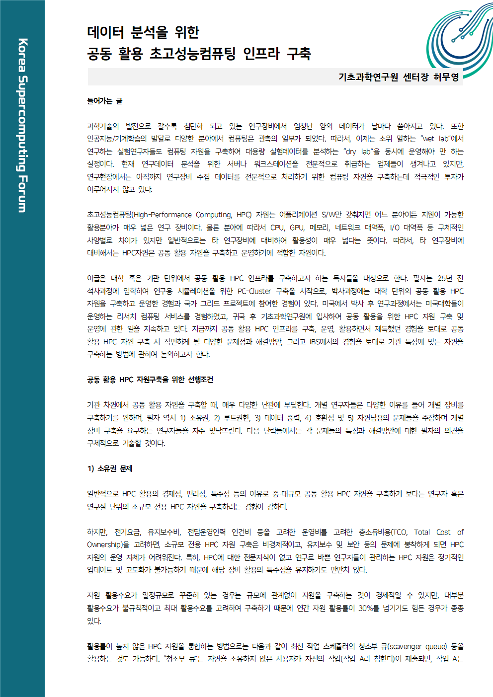 [칼럼] 데이터 분석을 위한 공동 활용 초고성능컴퓨팅 인프라 구축