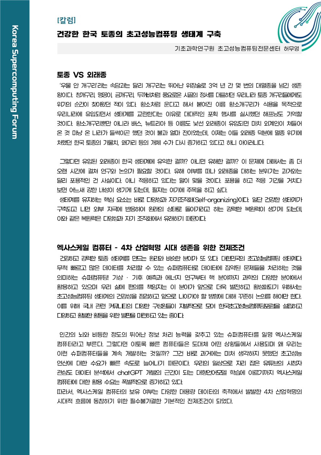[칼럼] 건강한 한국 토종의 초고성능컴퓨팅 생태계 구축