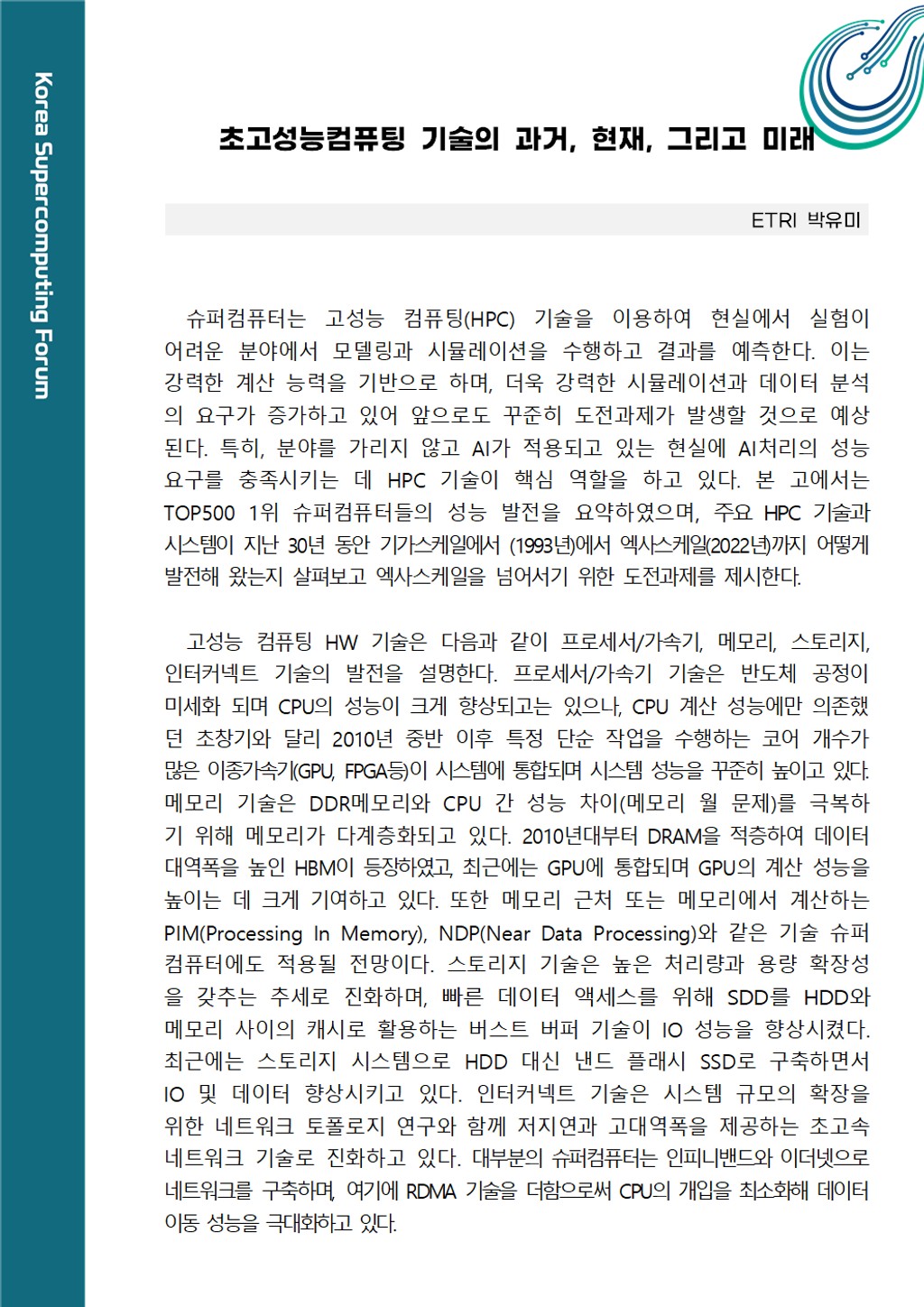 [칼럼] 초고성능컴퓨팅 기술의 과거, 현재, 그리고 미래