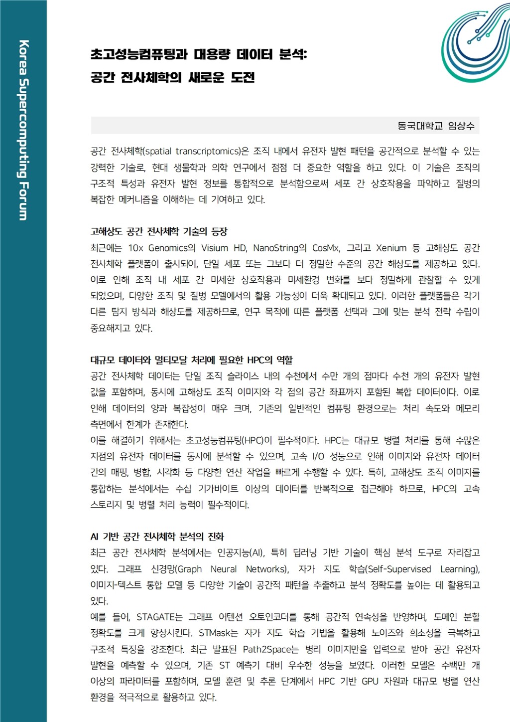 [칼럼] 초고성능컴퓨팅과 대용량 데이터 분석 : 공간 전사체학의 새로운 도전