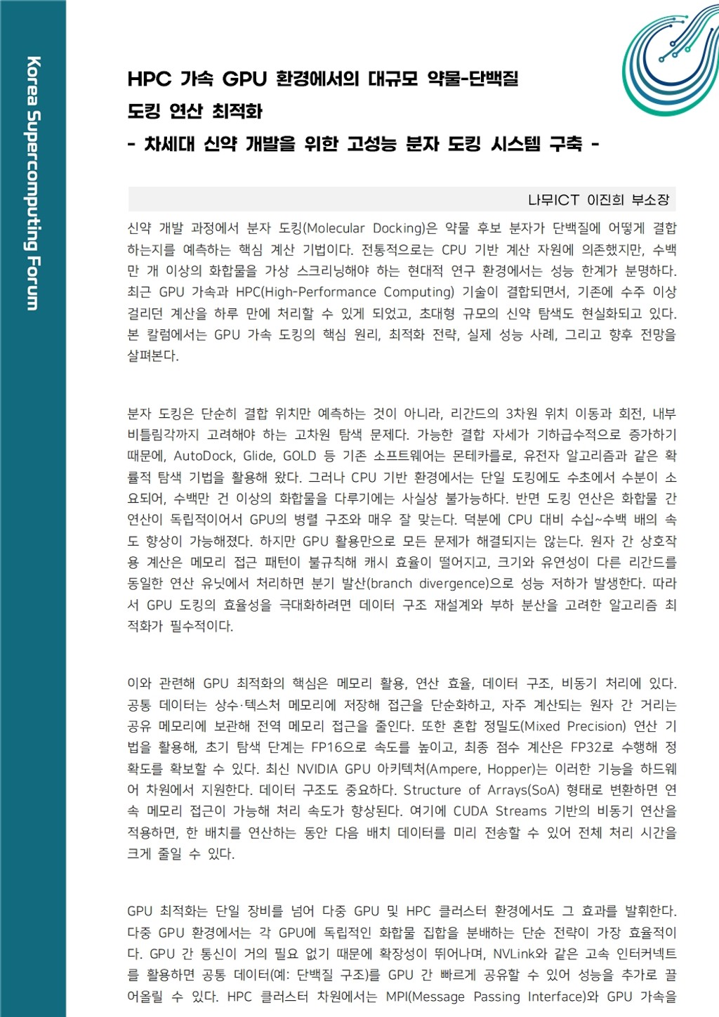 [칼럼] HPC 가속 GPU 환경에서의 대규모 약물-단백질 도킹 연산 최적화